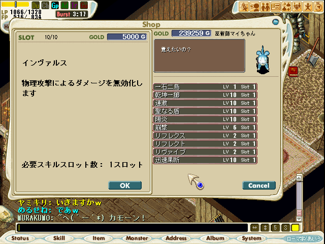 インヴァルス(物理無効)、火炎の祈り、群雲の祈りを購入できました。
